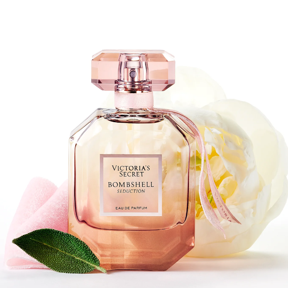 Mysterious and irresistible, Bombshell Seduction is an extension of America’s No. 1 Fragrance.* Inspired by the beauty of our signature ribbon, our perfumers designed Bombshell Seduction to evoke the cool touch of satin on bare skin. French sage opens the fragrance with an airy, refreshing feel. An intoxicating duo of white florals make up the glowing floral heart: signature white peony and creamy tuberose. Velvet musk adds a whisper of skin-like warmth, a mysterious end-note to this sheer beauty.